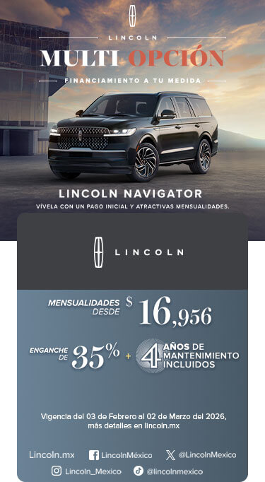 Lincoln Picacho, con domicilio en, Calle Periferico Sur 4080, Colonia Jardines del Pedregal, C.P. 01900, Del. Alvaro Obregón, es responsable del tratamiento de sus datos personales. La información de nuestros clientes y clientes potenciales es tratada de forma estrictamente confidencial y es tan importante como su seguridad al conducir nuestros vehículos, por lo que hacemos un esfuerzo permanente para salvaguardarla.